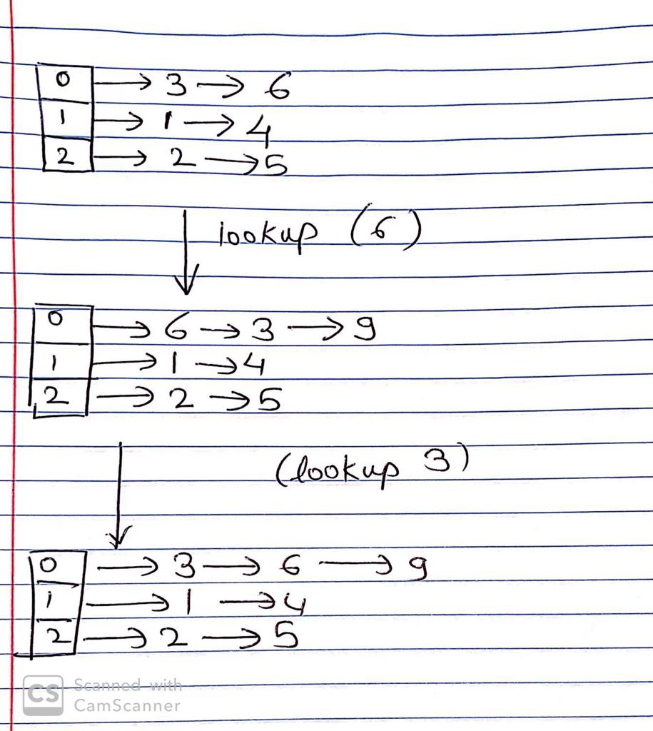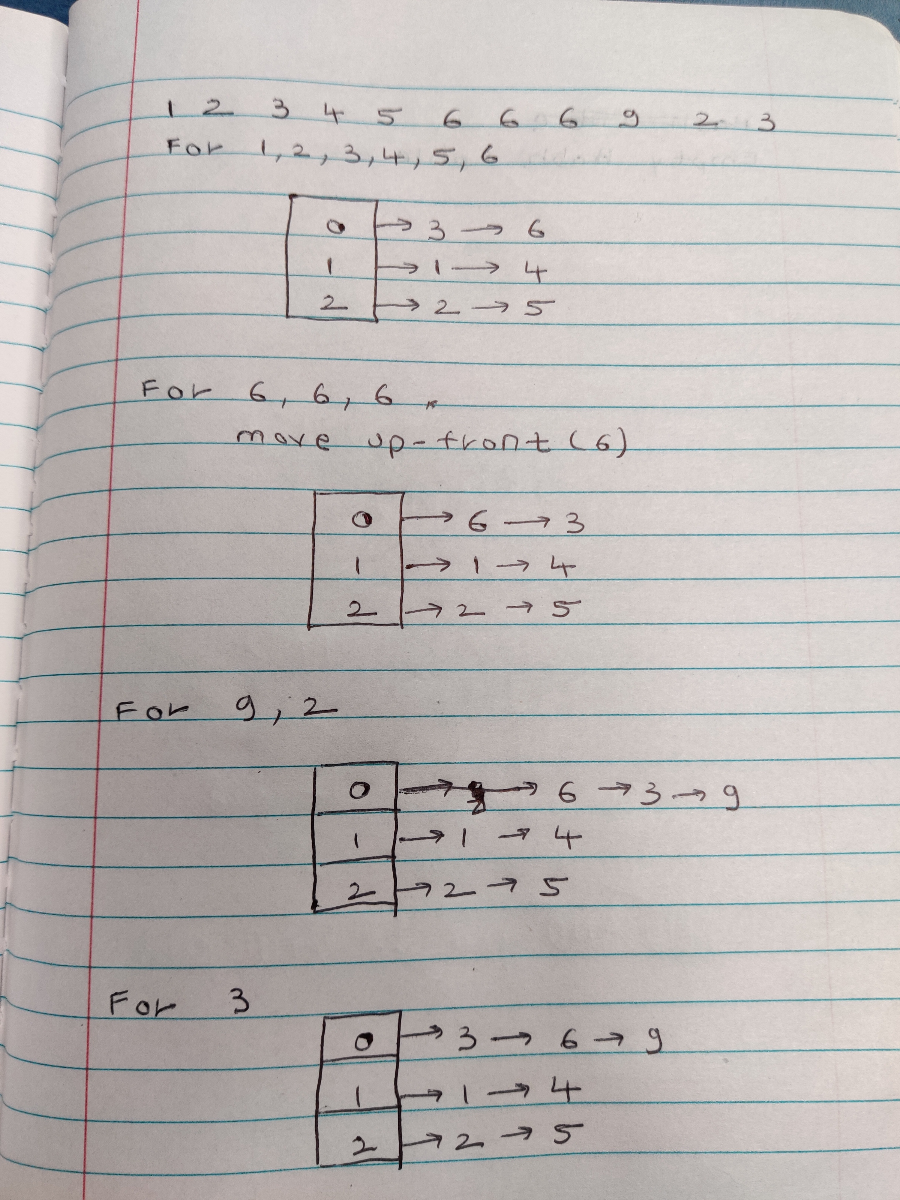h=5%3=2 so, a[0]=(3) a[1]=(1,4 ) . a[2]=(2,5)