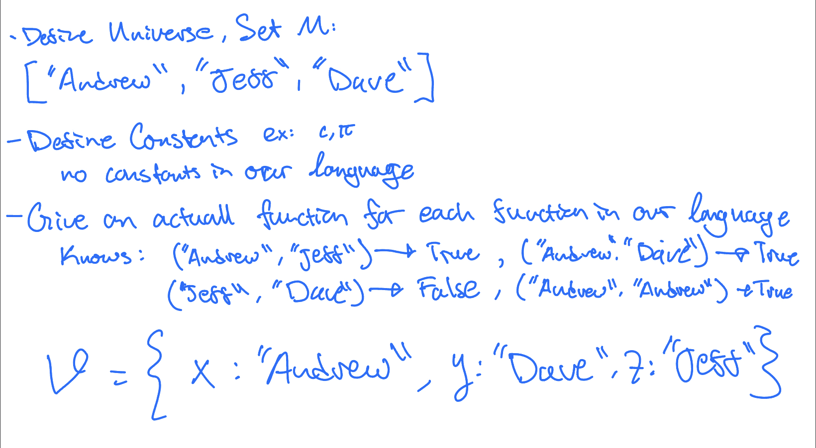 Model: M = {“Alice”, “Bob”, “Dave”}