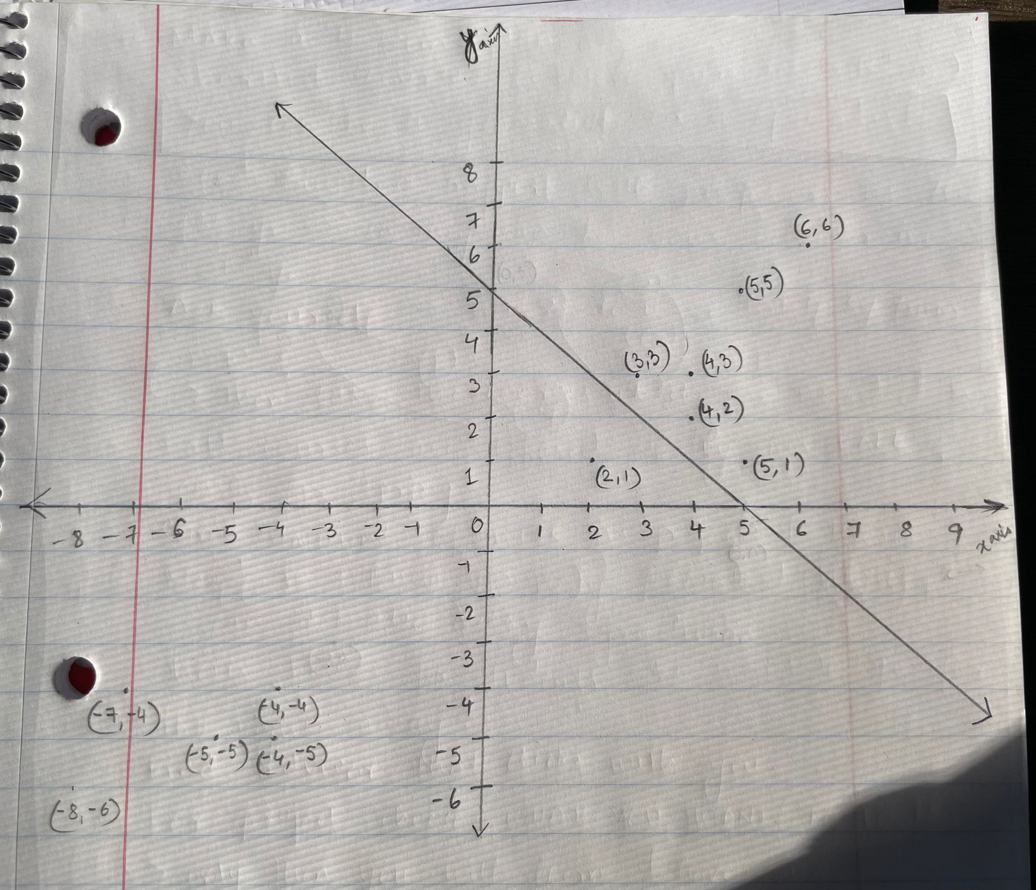 Following are the training dataset input - ((7,5),1),((7,4),1),((7,3),1),((7,2),1),((7,1),1), ((0,4),0),((1,4),0),((2,4),0),((3,4),0),((4,4),0),((8,4),0),((9,4),0)
