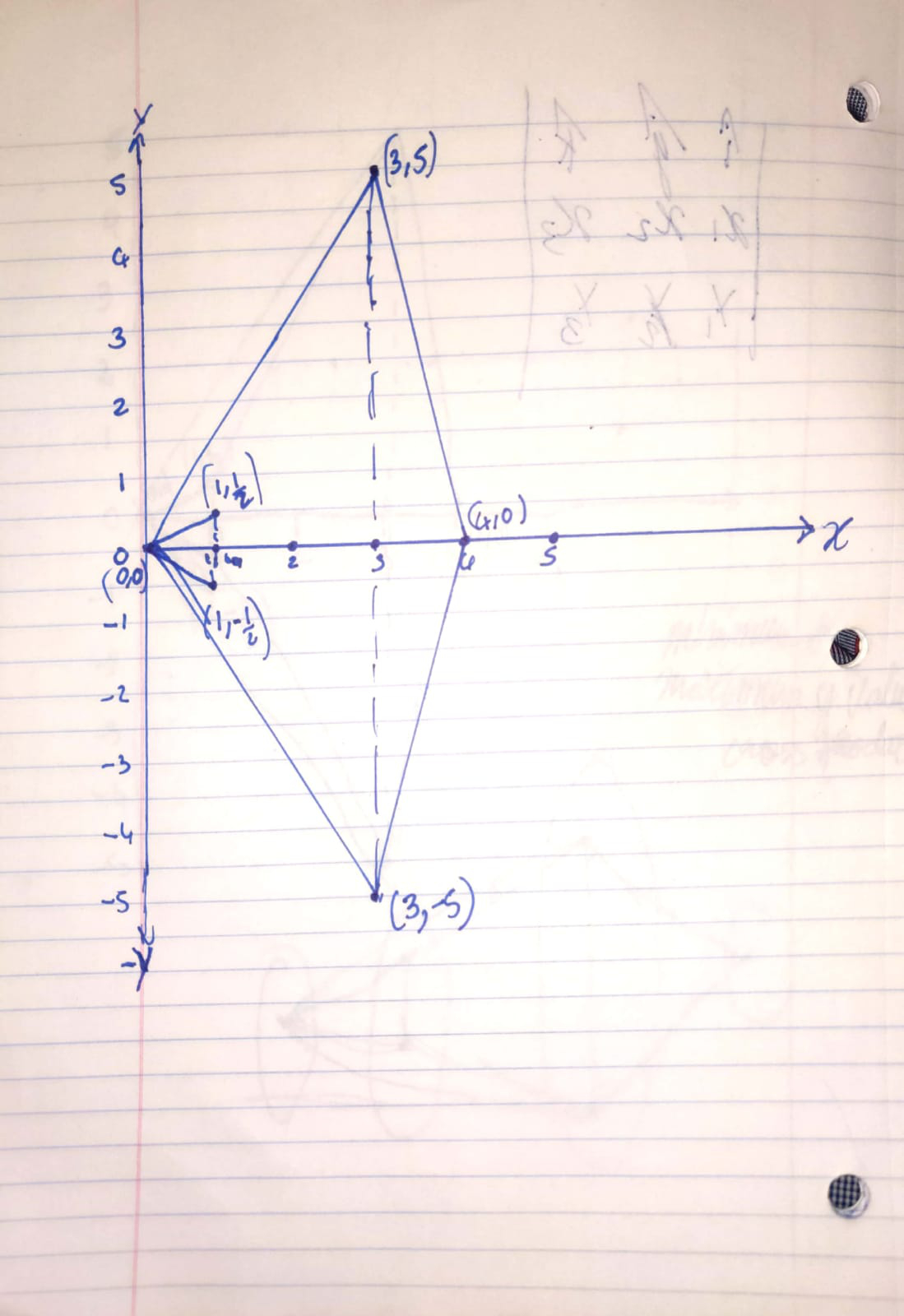 3. For connecting the points from right triangle to the left triangle, first consider (3,5) and (1,1/2). The vector that connects these two points will move outward in clockwise direction (as determined by the cross product) and connect to (0,0).