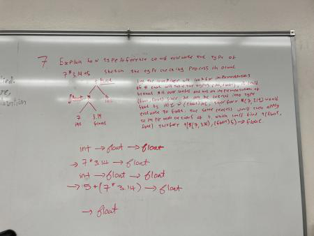 Nicholas Semaan and Yuanye Yang 8. Differentiate applicative versus normal order evaluation. Give an example using Scheme. Give an example of defining a new macro in Scheme. Applicative order evaluates subexpressions when, i.e. just before, the procedure is applied. Normal order passes subexpressions as they are, without evaluation, and proceeds with the evaluation only when the corresponding formal parameter is actually to be itself evaluated. Example: def double x = (plus x x) def average x y = (divide (plus x y) 2) Normal: (double (average 2 4)) => (plus (average 2 4) (average 2 4)) => (plus (divide (plus 2 4) 2) (average 2 4)) => (plus (divide 6 2) (average 2 4)) => (plus 3 (average 2 4)) => (plus 3 (divide (plus 2 4) 2)) => (plus 3 (divide 6 2)) => (plus 3 3) => 6 Applicative: double (average 2 4) => double (divide (plus 2 4) 2) => double (divide 6 2) => double 3 => plus 3 3 => 6 Macro Example: If your Scheme lacks the conditional special form when, you could define when as the following macro: (define-syntax when (lambda (test . branch) (list 'if test (cons 'begin branch))))(Edited: 2021-12-06)