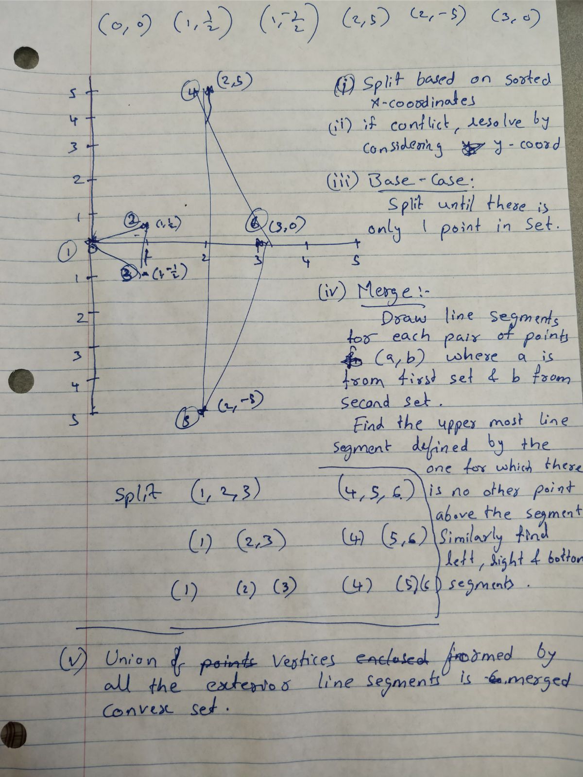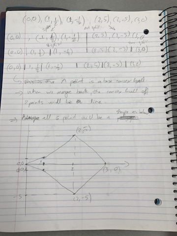 Final convex hull: {(0,0), (2, -5) (2, 5) (3,0)}