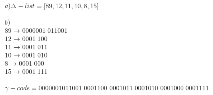 (b) γ-code -> [0000001 011001, 0001 100, 0001 011, 0001 010, 0001 000, 0001 111]