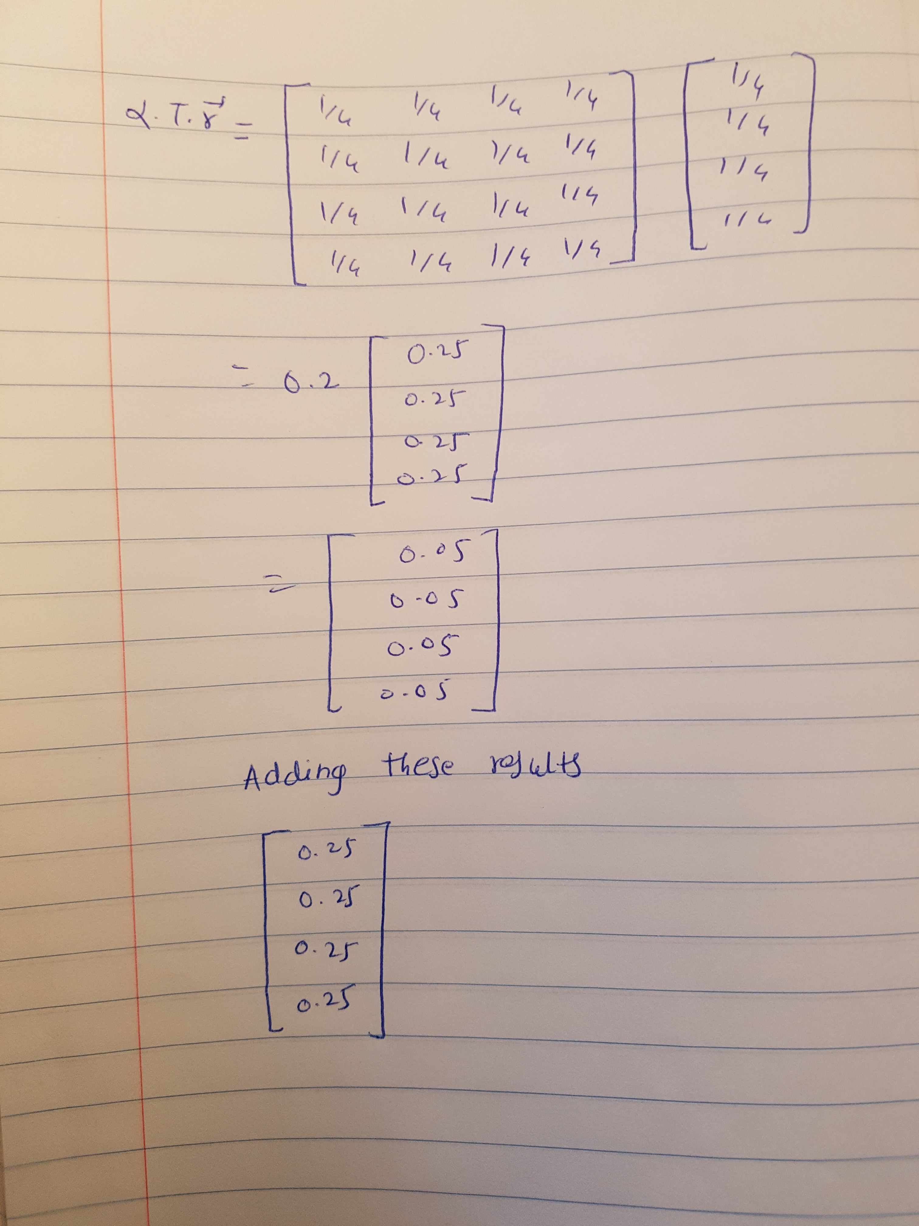 sum = [0.2,0.2,0,0].T + [0,0,0.2,0.2].T + [0.05,0.05,0.05,0.05].T = [0.25,0.25,0.25,0.25].T