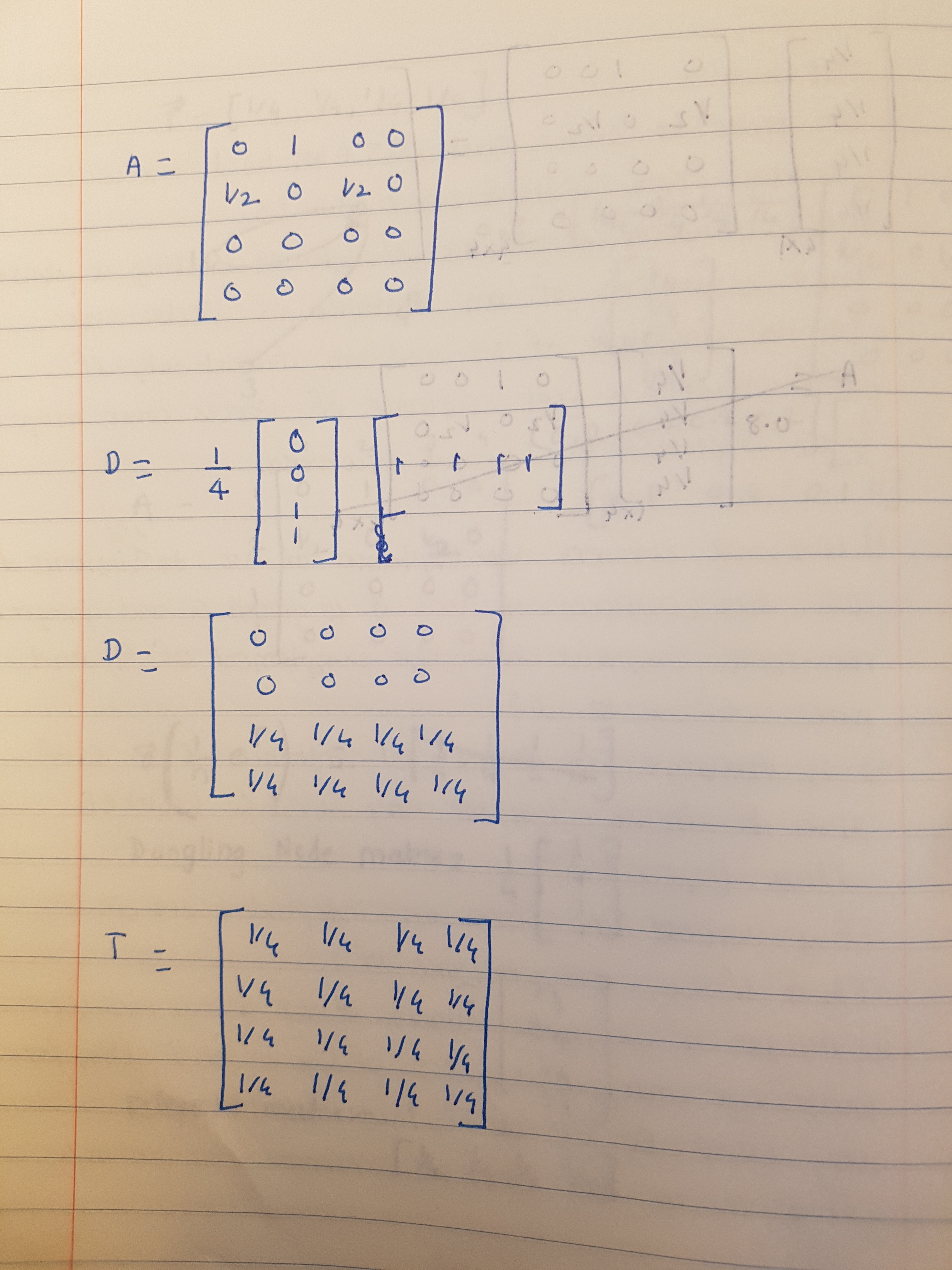 D = [0,0,1,1].T * 1/4 * [1,1,1,1] = [[0,0,0,0],[0,0,0,0],[0.25,0.25,0.25,0.25], [0.25,0.25,0.25,0.25]]